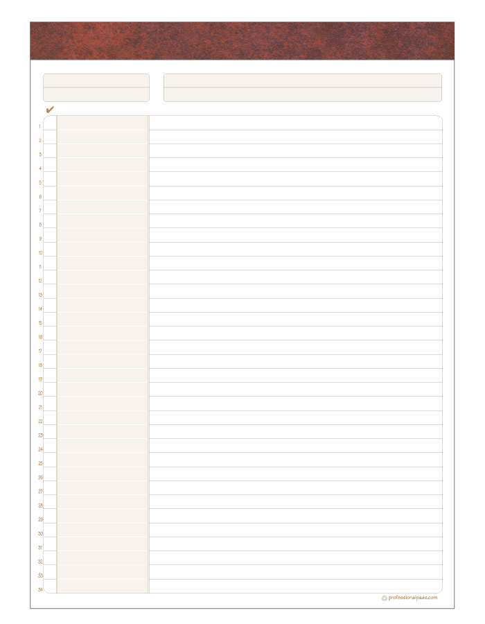 Have your business' name and/or logo imprinted on our brown marble leatherette tape binding. $35.00 setup fee + $0.15 per pad. Set up fee is added to your shipping costs. Maximum Imprint Area: 1/2 in. x 4 1/2 in.
